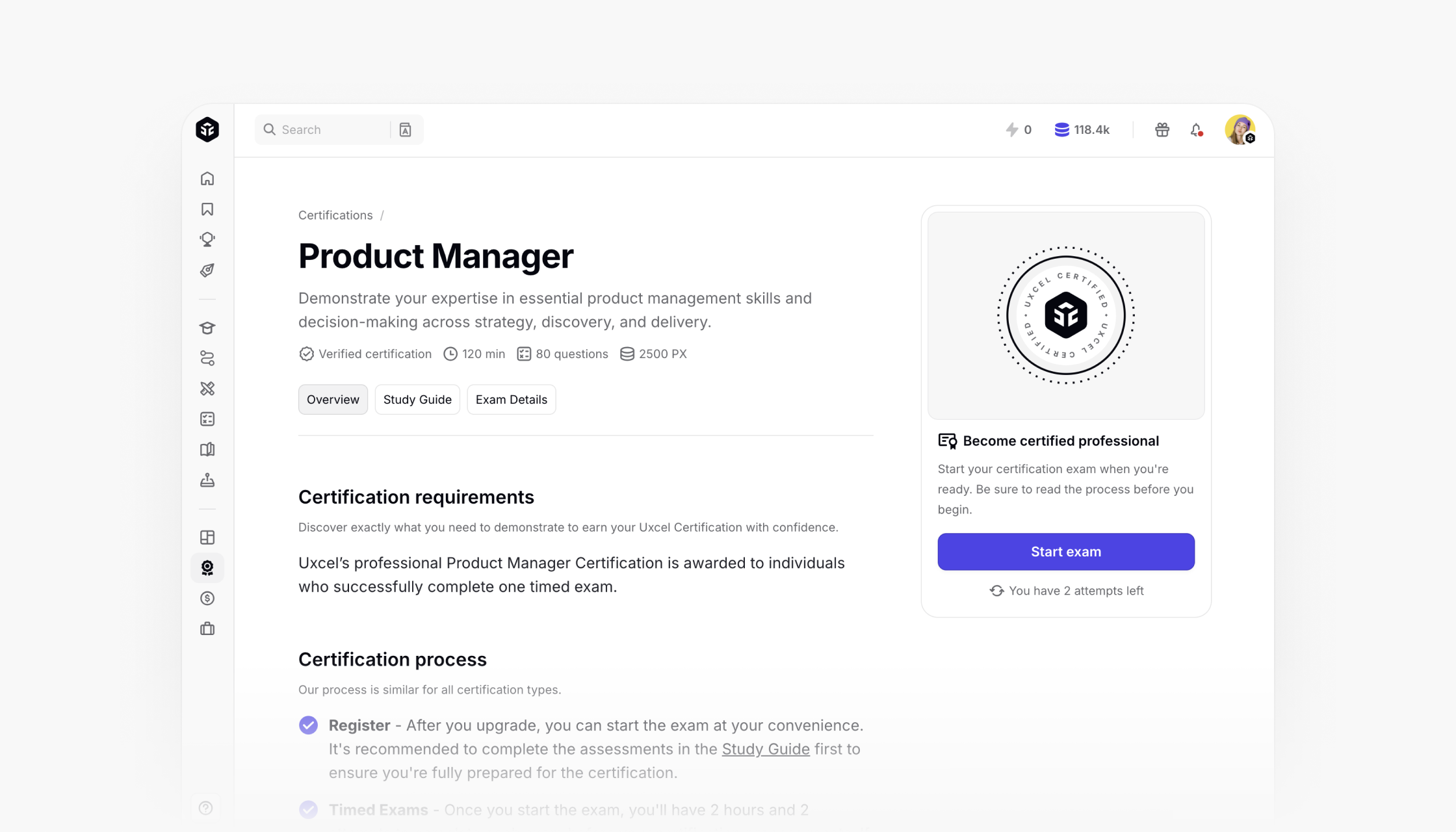 Complete a two-hour exam assessing product fundamentals, frameworks, and best practices across the product lifecycle